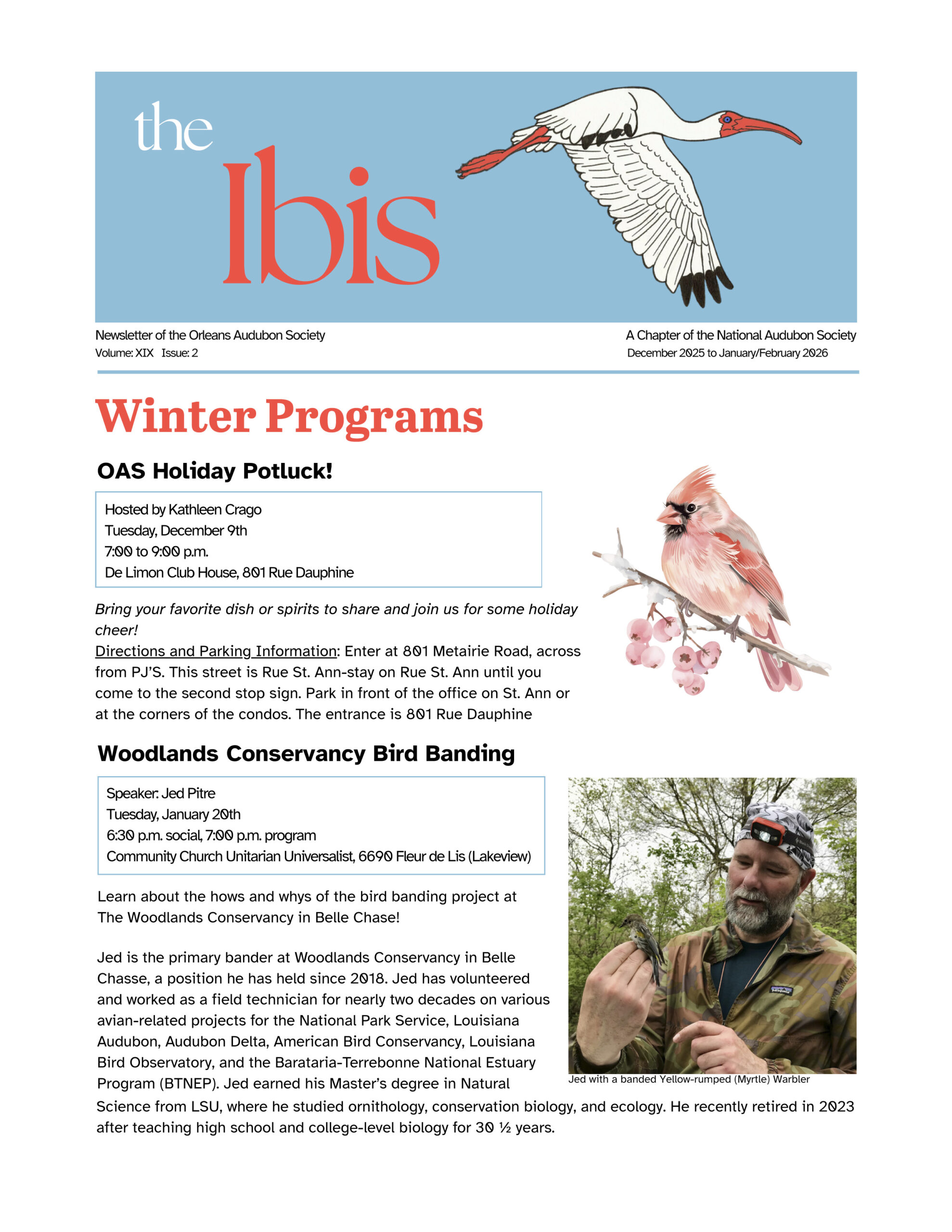 The Ibis December-January 20252026 Click here to download the December-January 2025-2026 issue of the Orleans Audubon Society’s newsletter.